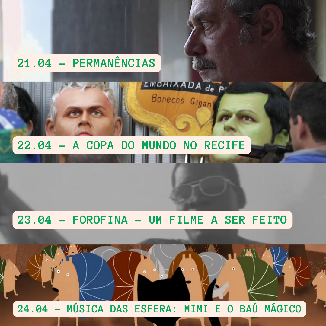 Com tema futebol Kleber Mendonça Filho firma presença com “A Copa do Mundo no Recife”, em que o cineasta apresenta várias imagens e entrevistas durante os jogos da Copa do Brasil, na capital pernambucana. Já no curta “A8″, Lúcio Branco faz um monólogo mostrando que para ter jogo é preciso do adversário. Ambos os curtas fizeram parte da seleção do Cinefoot – Festival de Cinema de Futebol (em anos diferentes), evento que entra em sua 14º edição e acontecerá esse mês entre os dias 25 a 30 de abril, no Rio de Janeiro.