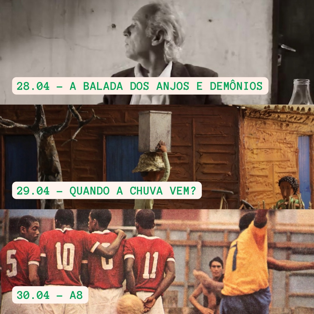 (A Balada dos Anjos e Demônios, 2019, 11 minutos, ficção, de Marcelo Domingues). O filme apresenta uma alegoria sobre a chegada inesperada e assustadora do futuro no mundo.